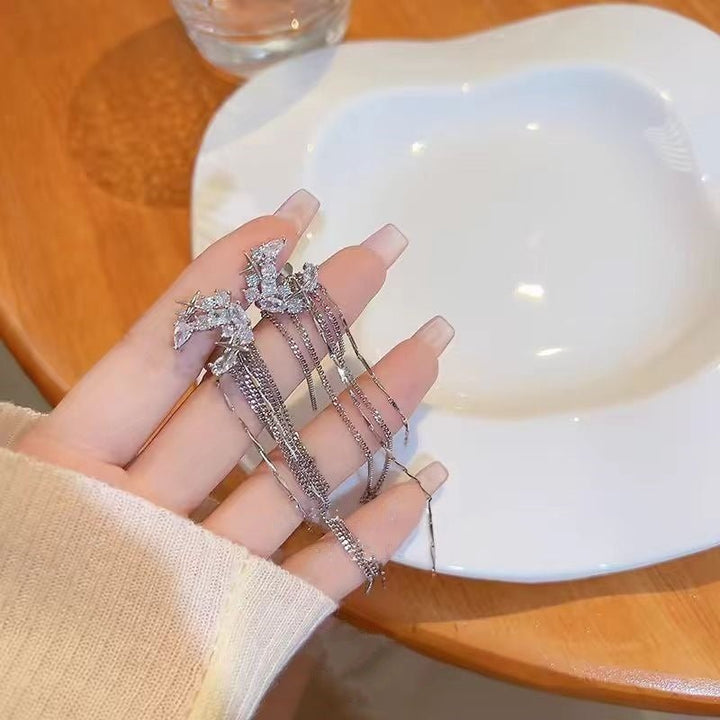 Fashion Elegant Zircon Awn Star Moon Tassel Non-piercing Ear Clip